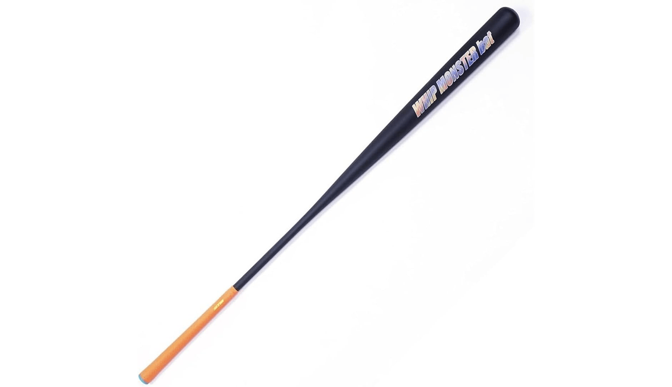 バット型でありながら柔らかくしなる構造が特徴の「ウィップモンスター」は、重くて硬いバットとは違い、しなりによってトップの間、切り返し、リズムが同時に整えられると謳うアイテムです。