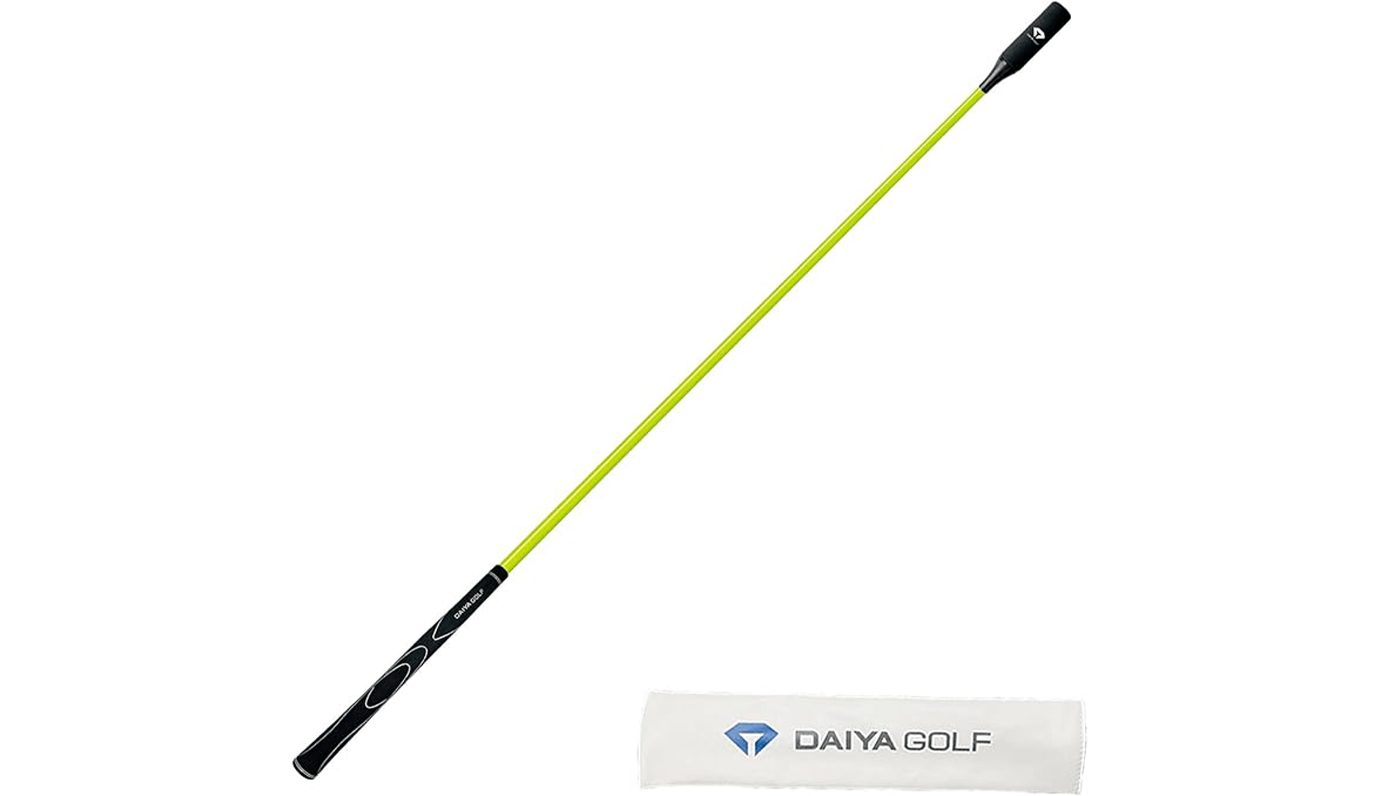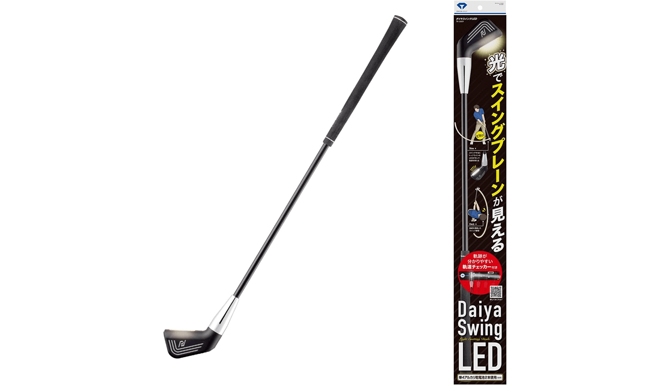 ダイヤのスイング練習器「ダイヤスイングLED」は、ヘッドに内蔵されたLEDが一定のヘッドスピードに達すると点灯し、スイング軌道を視覚的に確認できるという変わり種の素振り棒です。
