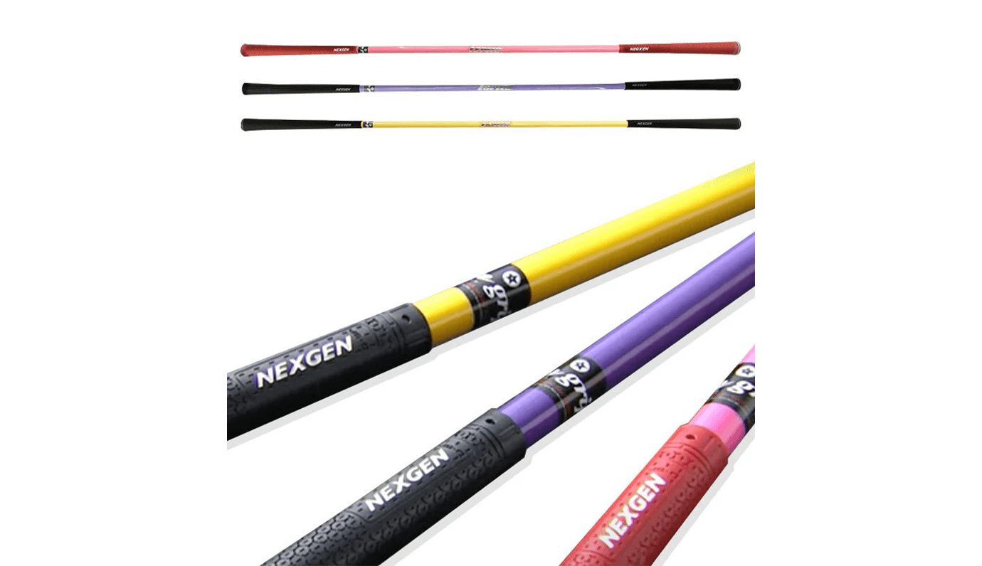 ドライバーに近い振り心地でラウンド前でも違和感なく使用でき、最加速時の「カチッ」という音がインパクトゾーンの確認と、スイングリズム習得をサポート。視認性の高いシャフトでプレーン確認がしやすく、45・43インチの2サイズ展開で好みの重さ・長さを選べます。