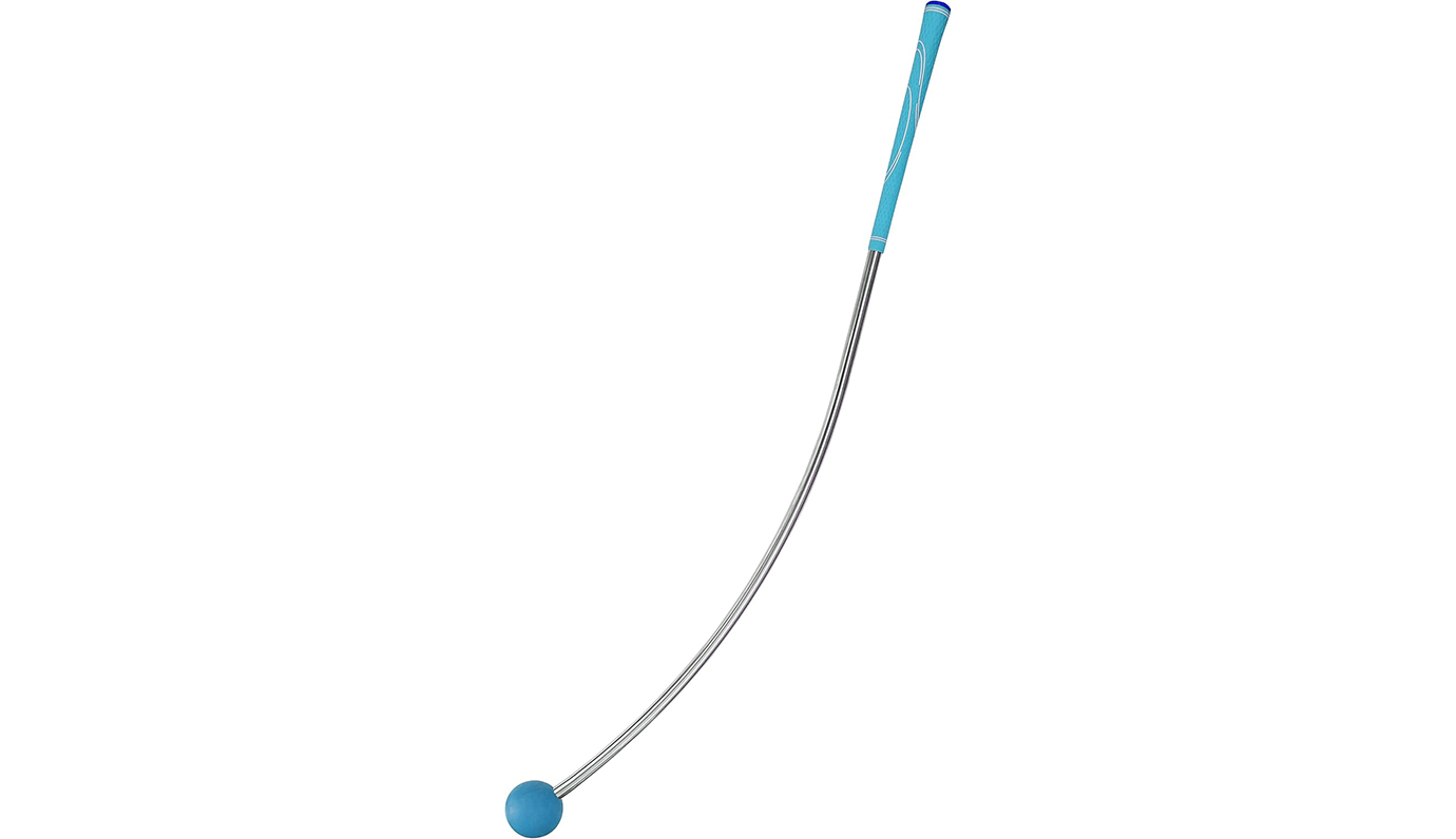 LYNX(リンクス)の「フレループ」は、曲がったシャフトの先にボールがついた独特な構造の素振り棒です。誤ったスイングをすると、グリップが手の中で回ったり、全体がぶれるような感覚があります。